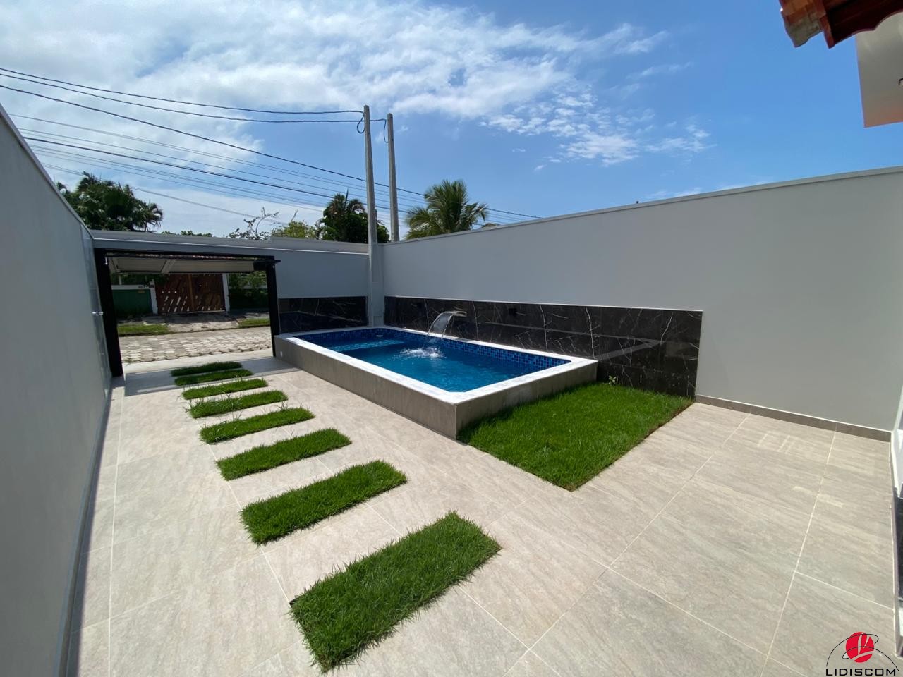 churrasqueira, 01 lavabo externo, lavanderia coberta, corredor de fundo aos