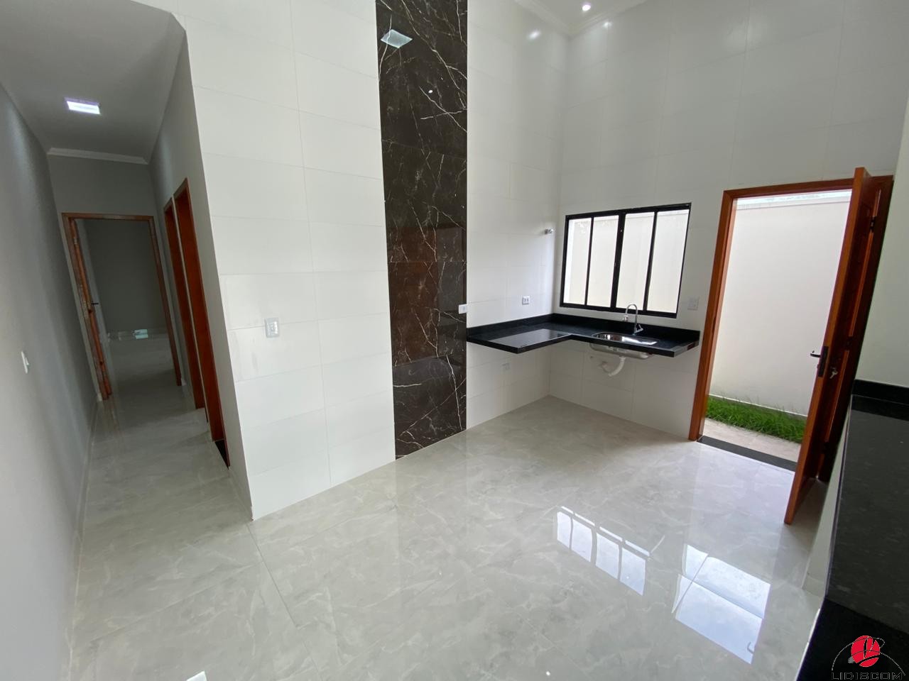 verde ubatuba, cozinha com balcão em L, acabamento finíssimo, portas e janelas