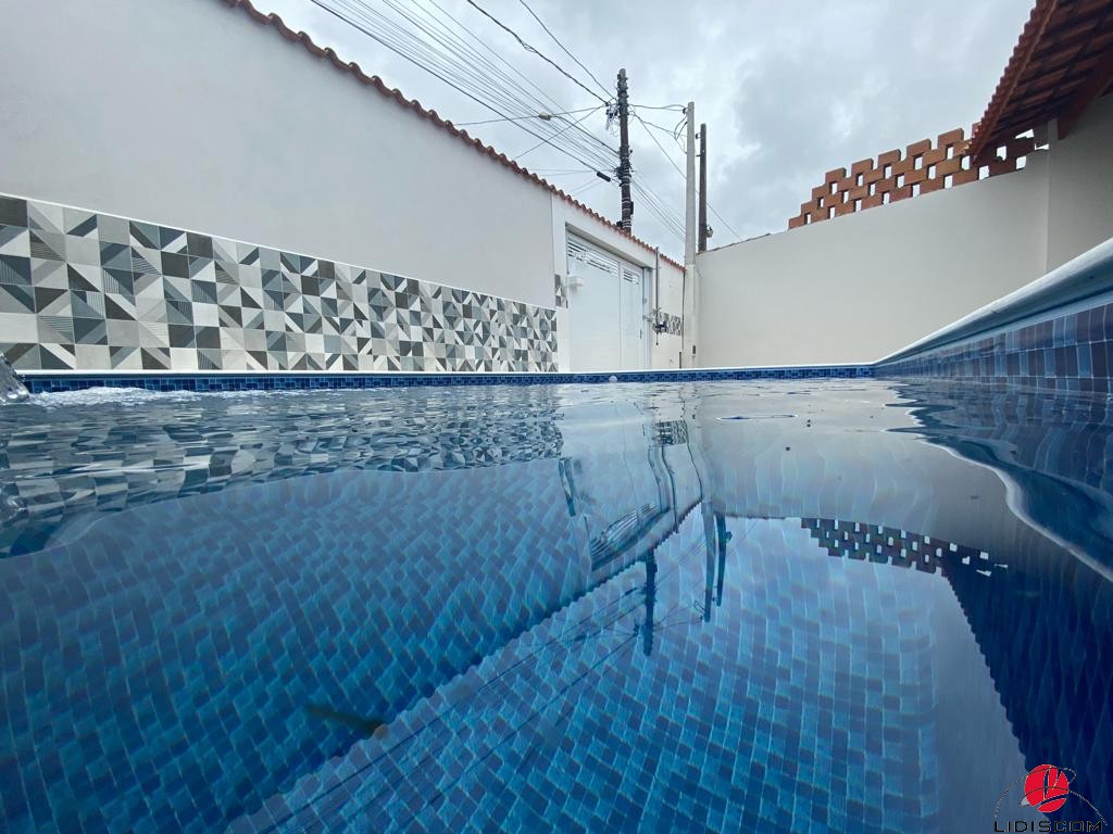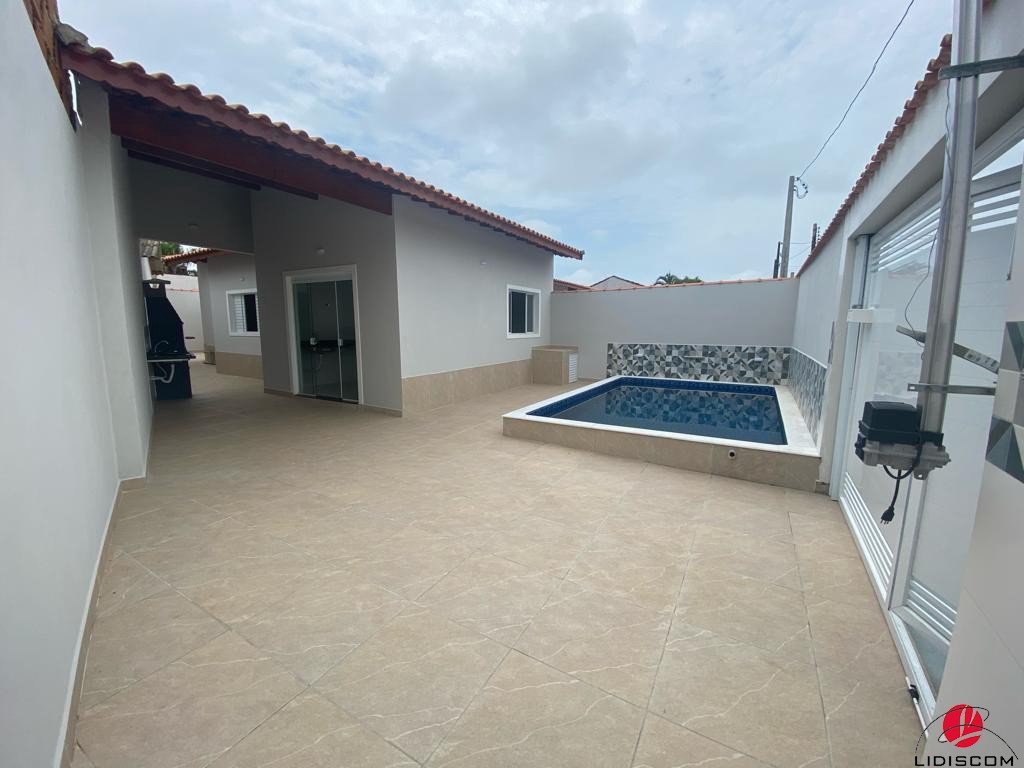 Casa no Jardim Jamaica em Itanhaém (lado praia) aproximadamente 900 metros de distância da praia 🏖️ São 02 dormitórios (sendo 01 suíte) sala e cozinha em conceito aberto, 1 banheiro social, churrasqueira com pia de granito, linda piscina, 3 vagas de garagem com portão automatizado (documentação ok aceita financiamento bancário) ✅