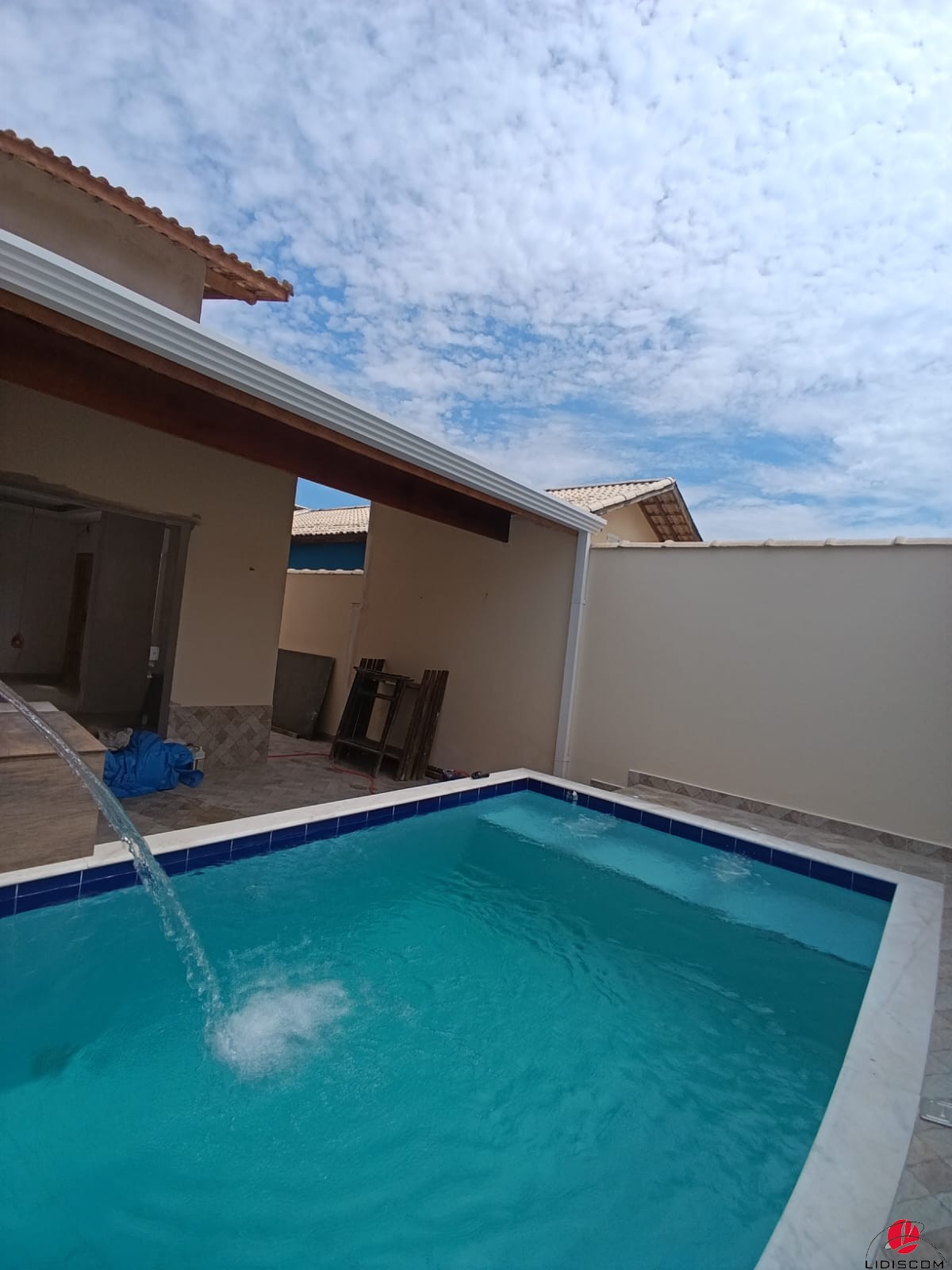 uma linda área gourmet com churrasqueira e uma belíssima piscina com 02 bicos de hidromassagem e