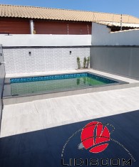 com churrasqueira revestida, pia em granito, 02 duchas tira-areia e 01 lavabo