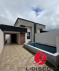 Casa isolada em excelente localização no Cibratel, divisa com Belas Artes! imóvel moderno em fase de obras com paredes duplas individuais, garantindo privacidade e aprovação bancária. Possui 02 dormitórios (sendo 01 suíte), sala ampla com pé direito duplo e sanca, 01 lavabo externo e acabamento em porcelanato e granito. Área externa com piscina 5x3m, churrasqueira anexa à lavanderia e esquadrias em alumínio preto. São 03 vagas de garagem, sendo uma coberta. Design contemporâneo com textura grafiato em bairro de moradores