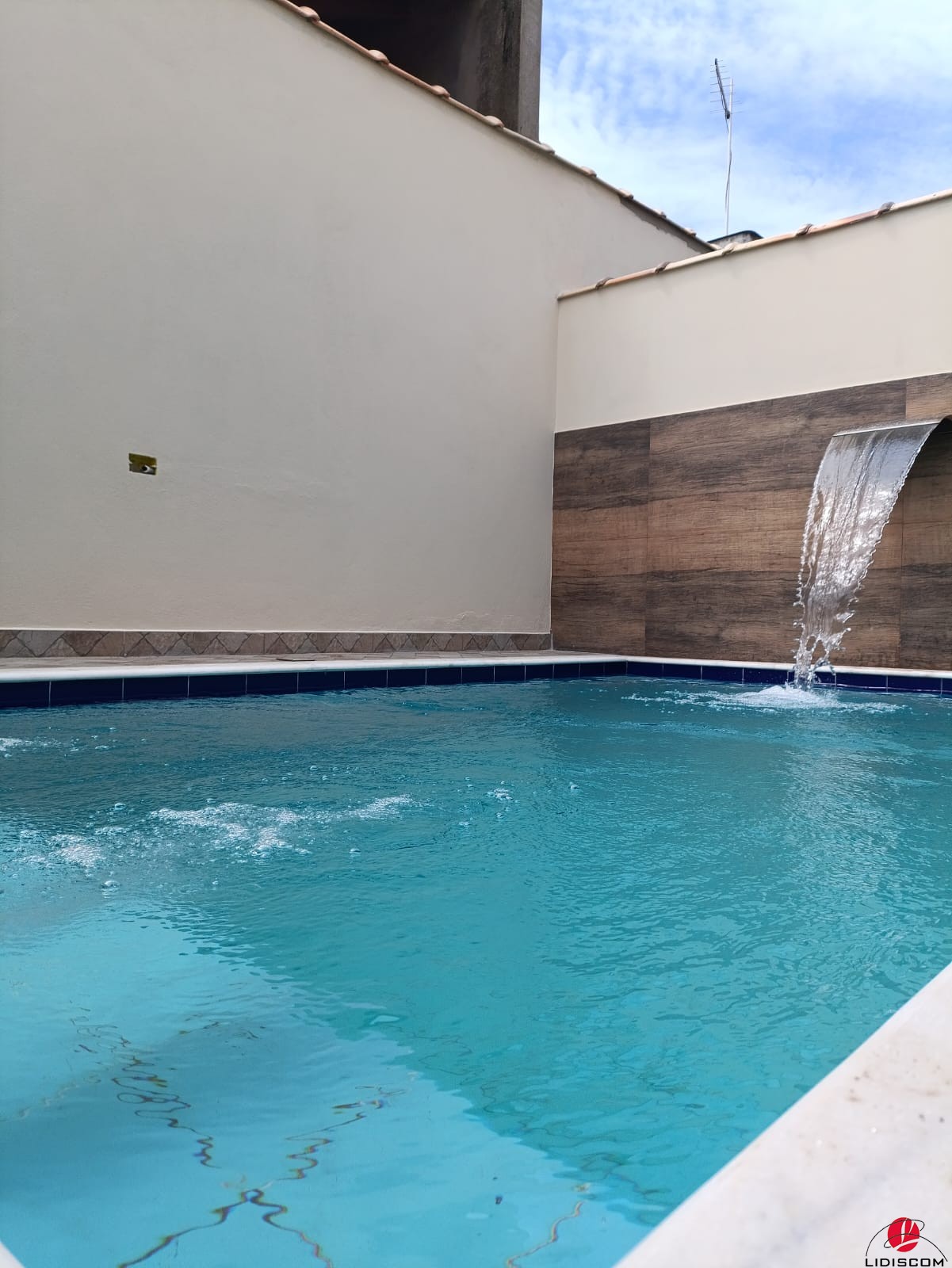 uma linda área gourmet com churrasqueira e uma belíssima piscina com 02 bicos de hidromassagem e